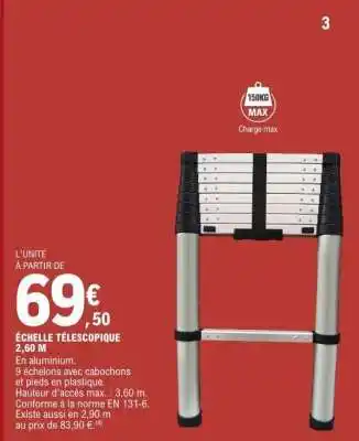 Offre Échelle télescopique 2,60 M chez E.Leclerc