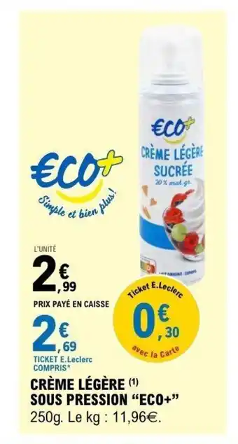Actuellement en offre chez E.Leclerc : ECO+ Crème légère sous pression ✅ Valable du 16-12 au 28-12.