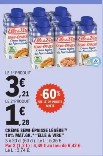 Actuellement en offre chez E.Leclerc : ELLE & VIRE Crème semi-épaisse légère 18% mat.gr. ✅ Valable du 3-02 au 14-02.
