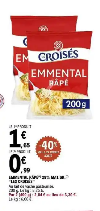 Actuellement en offre chez E.Leclerc : EMMENTAL RÂPÉ 29% MAT.GR. “LES CROISÉS” ✅ Valable du 3-02 au 14-02.