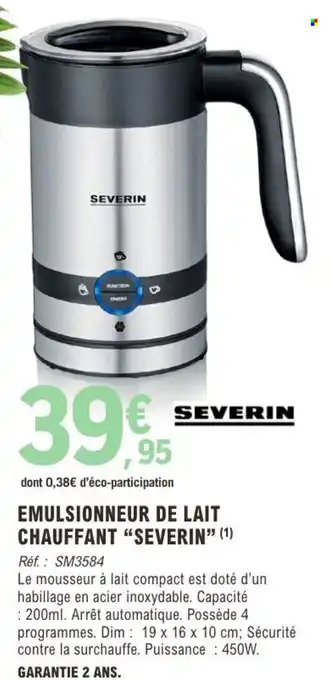 Offre EMULSIONNEUR DE LAIT CHAUFFANT SEVERIN chez E.Leclerc