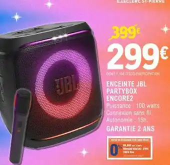 Actuellement en offre chez E.Leclerc : ENCEINTE JBL PARTYBOX ENCORE2 ✅ Valable du 24-02 au 8-03.