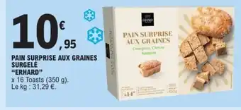 Actuellement en offre chez E.Leclerc : ERHARD Pain surprise aux graines surgelé ✅ Valable du 16-12 au 27-12.