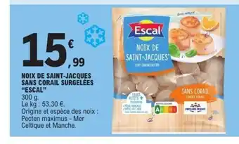 Actuellement en offre chez E.Leclerc : ESCAL Noix de saint-jacques sans corail surgelées ✅ Valable du 16-12 au 27-12.