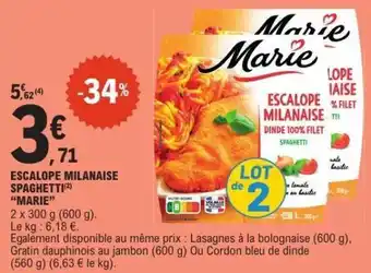 Actuellement en offre chez E.Leclerc : ESCALOPE MILANAISE SPAGHETTI MARIE ✅ Valable du 24-02 au 7-03.