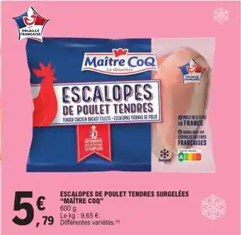 Actuellement en offre chez E.Leclerc : Escalopes de poulet tendres surgelées maître coq ✅ Valable du 23-12 au 3-01.