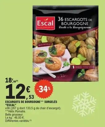 Actuellement en offre chez E.Leclerc : Escargots de bourgogne surgelés escal ✅ Valable du 23-12 au 3-01.