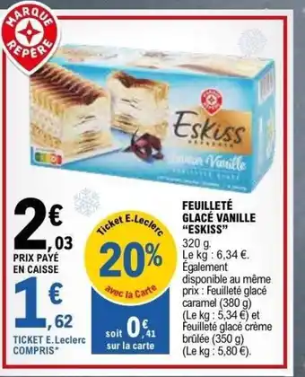 Actuellement en offre chez E.Leclerc : ESKISS Feuilleté glacé vanille ✅ Valable du 23-12 au 3-01.