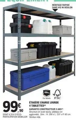 Offre ÉTAGÈRE CHARGE LOURDE 4 TABLETTES chez E.Leclerc