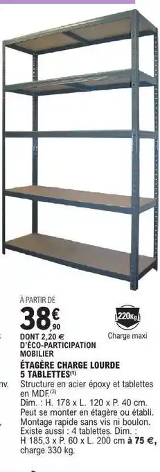 Actuellement en offre chez E.Leclerc : ÉTAGÈRE CHARGE LOURDE 5 TABLETTES ✅ Valable du 6-01 au 7-02.