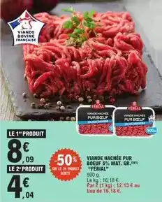 Offre Ferial - viande hachée pur boeuf 5% mat. gr chez E.Leclerc