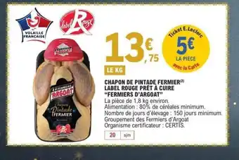 Actuellement en offre chez E.Leclerc : FERMIERS D'ARGOAT Chapon de pintade fermier label rouge prêt à cuire ✅ Valable du 16-12 au 27-12.