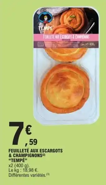 Actuellement en offre chez E.Leclerc : Feuilleté aux escargots & champignons tempé ✅ Valable du 23-12 au 3-01.