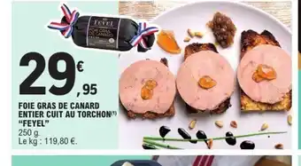 Actuellement en offre chez E.Leclerc : FEYEL Foie gras de canard entier cuit au torchon ✅ Valable du 16-12 au 27-12.
