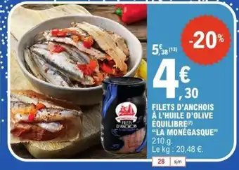 Offre FILETS D’ANCHOIS À L’HUILE D’OLIVE ÉQUILIBRE “LA MONÉGASQUE” chez E.Leclerc