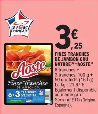 Actuellement en offre chez E.Leclerc : FINES TRANCHES DE JAMBON CRU NATURE AOSTE ✅ Valable du 28-04 au 9-05.