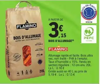 Actuellement en offre chez E.Leclerc : FLAMINO Bois d'allumage ✅ Valable du 13-01 au 24-01.