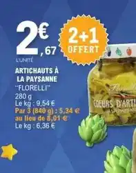 Actuellement en offre chez E.Leclerc : Florelli - artichauts a la paysanne ✅ Valable du 17-02 au 28-02.