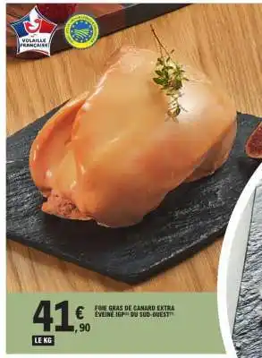 Actuellement en offre chez E.Leclerc : Foie Gras de Canard Extra Eveiné IGP du Sud-Ouest ✅ Valable du 20-01 au 31-01.