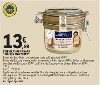 Actuellement en offre chez E.Leclerc : Foie gras de canard maison montfort ✅ Valable du 23-12 au 3-01.
