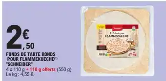 Actuellement en offre chez E.Leclerc : FONDS DE TARTE RONDS POUR FLAMMEKUECHE SCHNEIDER ✅ Valable du 17-02 au 28-02.
