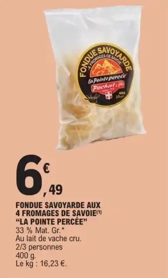 Actuellement en offre chez E.Leclerc : Fondue savoyarde aux 4 fromages de savoie la pointe percée ✅ Valable du 30-12 au 10-01.