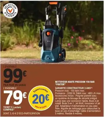 Foxter - nettoyeur haute pression 150 bar offres et promotions en ligne chez E.Leclerc