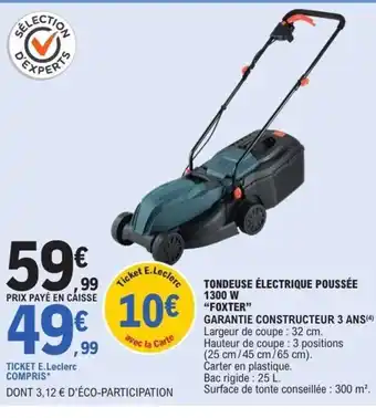 FOXTER Tondeuse électrique poussée 1300 w offres et promotions en ligne chez E.Leclerc