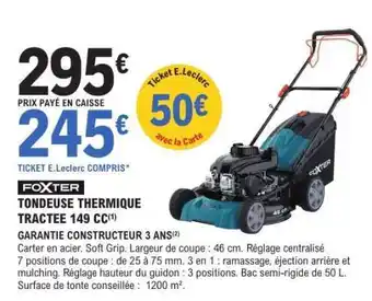FOXTER TONDEUSE THERMIQUE TRACTEE 149 CC : offres et promos E.Leclerc à découvrir