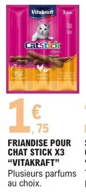 Actuellement en offre chez E.Leclerc : Friandise pour chat stick x3 vitakraft ✅ Valable du 21-04 au 3-05.
