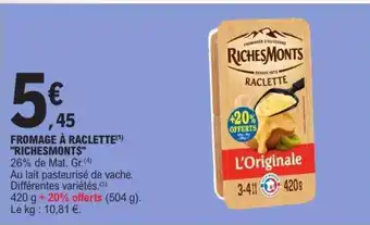 Actuellement en offre chez E.Leclerc : Fromage à Raclette Richesmonts ✅ Valable du 17-03 au 28-03.