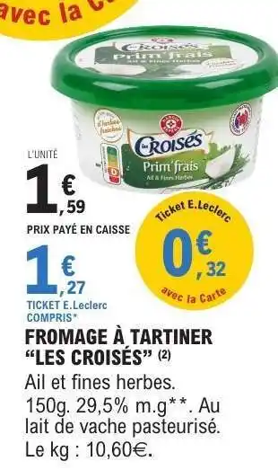 FROMAGE À TARTINER “LES CROISÉS” offres et promotions en ligne chez E.Leclerc