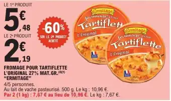 Offre FROMAGE POUR TARTIFLETTE L'ORIGINAL 27% MAT.GR. ERMITAGE chez E.Leclerc
