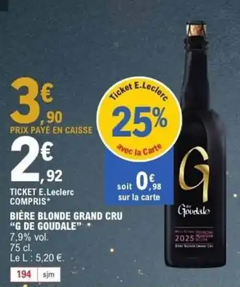 G DE GOUDALE Bière blonde grand cru offres et promotions en ligne chez E.Leclerc