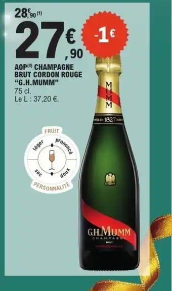 Actuellement en offre chez E.Leclerc : G.H MUMM Aop champagne brut cordon rouge ✅ Valable du 16-12 au 27-12.