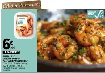 Offre Gambas ASC entières cuites chez E.Leclerc