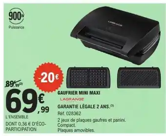 L'offre est disponible dans plusieurs magasins, vérifiez tous les produits pour obtenir le GAUFRIER MINI MAXI le moins cher. Si vous souhaitez savoir si l'article est en vente avec une plus grosse remise dans un autre magasin, consultez la catégorie 'Supermarché'. Ces offres pourraient aussi vous intéresser : LAGRANGE Gaufrier mini maxi, Lagrange gaufrier mini maxi & LAGRANGE Gaufrier mini max.