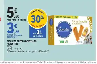 Actuellement en offre chez E.Leclerc : GAVOTTES Biscuits crêpes dentelles ✅ Valable du 9-12 au 20-12.