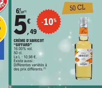 Actuellement en offre chez E.Leclerc : GIFFARD Crème d'abricot ✅ Valable du 16-12 au 27-12.