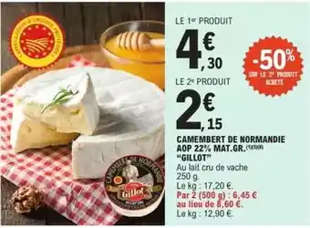 Actuellement en offre chez E.Leclerc : Gillot - camembert de normandie aop 22% mat.gr ✅ Valable du 30-12 au 10-01.