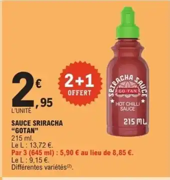 Actuellement en offre chez E.Leclerc : GOTAN Sauce sriracha ✅ Valable du 16-12 au 27-12.