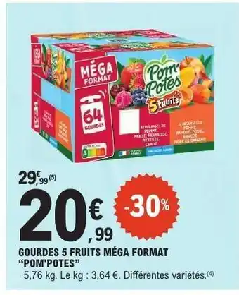Actuellement en offre chez E.Leclerc : GOURDES 5 FRUITS MÉGA FORMAT “POM'POTES” ✅ Valable du 21-04 au 2-05.