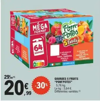Actuellement en offre chez E.Leclerc : Gourdes 5 Fruits 'Pom'Potes' ✅ Valable du 10-02 au 21-02.