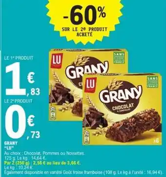 En plus de l'offre GRANY LU, E.Leclerc propose une large gamme de produits. Consultez le Catalogue E.Leclerc hebdomadaire pour découvrir les meilleures offres et promotions. En plus de GRANY LU, il y a aussi : LU Grany, GRANY & Lu napolitain.