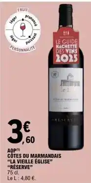 En plus de l'offre Hachette - aop cotes du marmandais la vieille église, E.Leclerc propose une large gamme de produits. Consultez le Catalogue E.Leclerc hebdomadaire pour découvrir les meilleures offres et promotions. En plus de Hachette - aop cotes du marmandais la vieille église, il y a aussi : Aop cotes du marmandais, Aop côtes du marmandais & AOC* CÔTES DU MARMANDAIS.