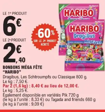 Actuellement en offre chez E.Leclerc : Haribo bonbons méga fête dragibus ✅ Valable du 10-03 au 21-03.