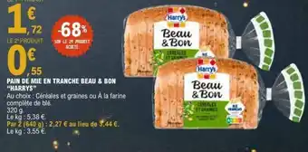 L'offre est disponible dans plusieurs magasins, vérifiez tous les produits pour obtenir le HARRYS Pain de mie en tranche beau & bon le moins cher. Si vous souhaitez savoir si l'article est en vente avec une plus grosse remise dans un autre magasin, consultez la catégorie 'Supermarché'. Ces offres pourraient aussi vous intéresser : Beau & bon harrys, Harrys beau & bon & Harrys pain de mie 100% mie.