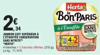 Offre Herta - jambon cuit superieur à l'étouffée conservation sans nitrite chez E.Leclerc