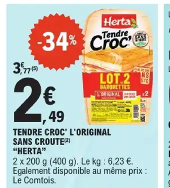 Découvrez les produits les moins chers parmi toutes les offres ! Si vous voulez savoir si E.Leclerc propose la meilleure remise pour Herta tendre croc' l'original sans croute, comparez-la sur la page thèmes ou avec d'autres magasins.