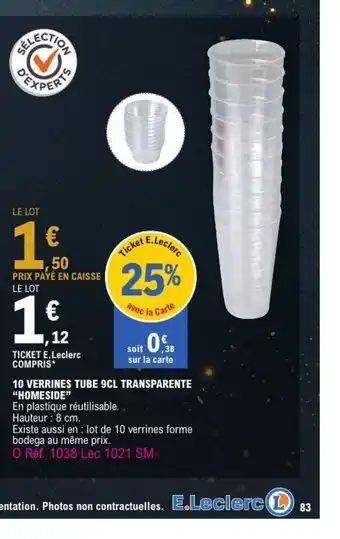 Offre HOMESIDE 10 verrines tube transparente chez E.Leclerc